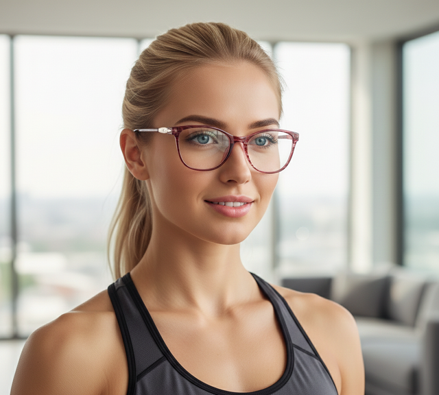 Armazón Jean de Paris estilo agatado de acetato color rojo a rayas con detalles amarillos, sus patas están cubiertas en acetato.