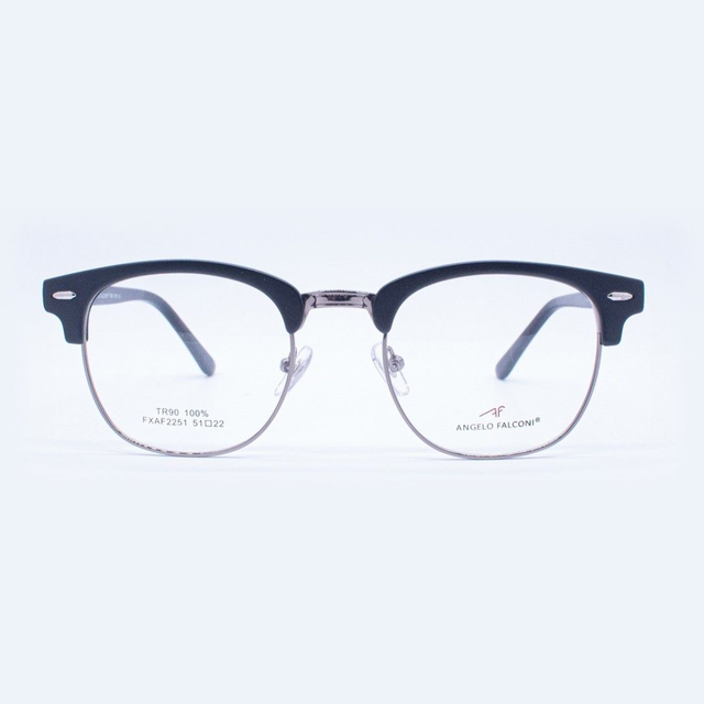 Descubre el estilo retro con los armazones ópticos Angelo Falconi TR90 FXAF-2251, inspirados en el icónico diseño clásico de Ray-Ban Clubmaster de los años 50. Estos armazones combinan la estética vintage con comodidad moderna, perfectos para un look intelectual y timeless. Fabricados en material TR90 ultraligero y flexible, ofrecen durabilidad excepcional y se adaptan perfectamente a cualquier rostro gracias a su diseño plegable y resistente a impactos. Ideales para lentes de prescripción. Tamaño: 51-22-145 mm.