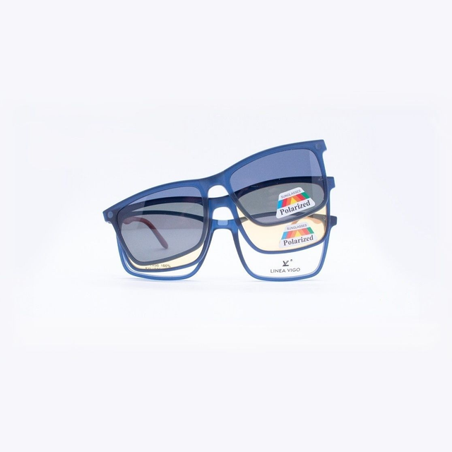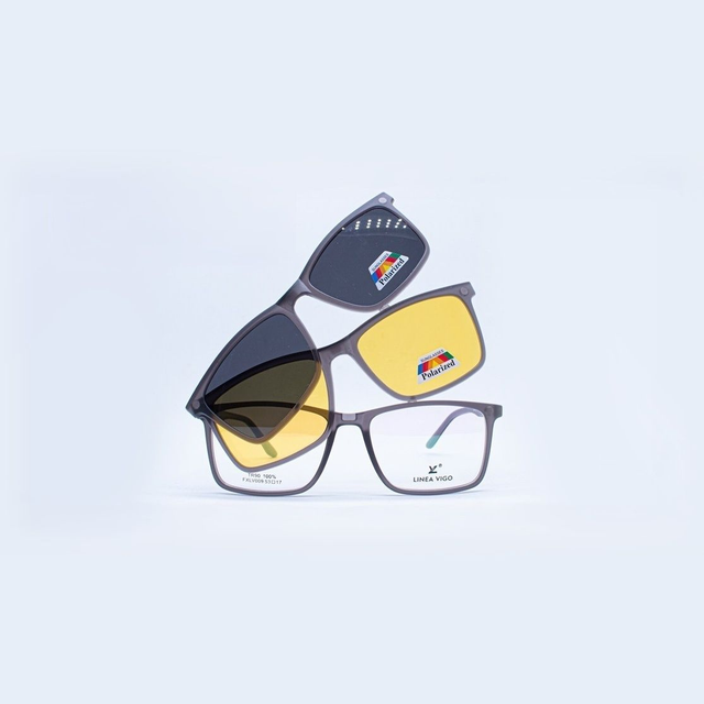Incluye sobre lente polarizado oscuro y sobre lente polarizado ámbar, estuche y paño.