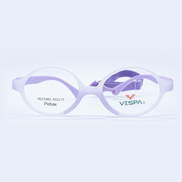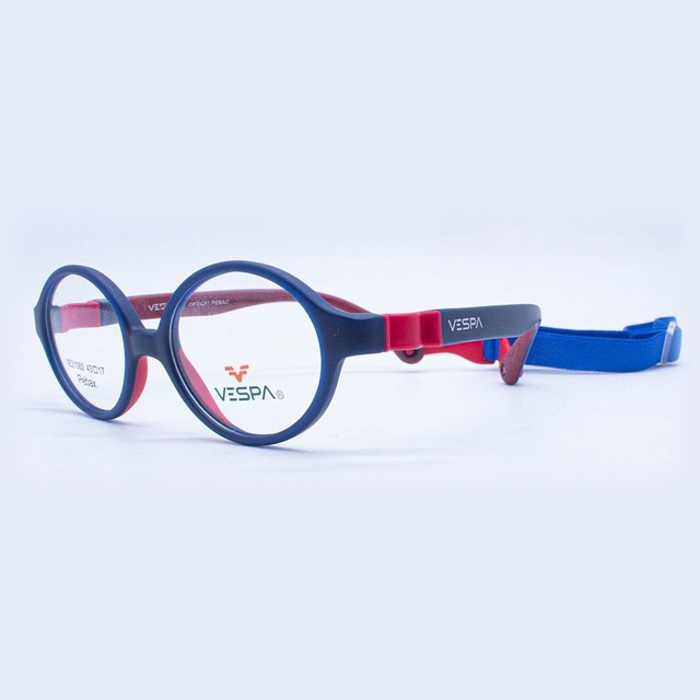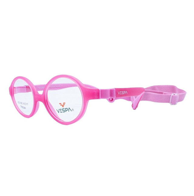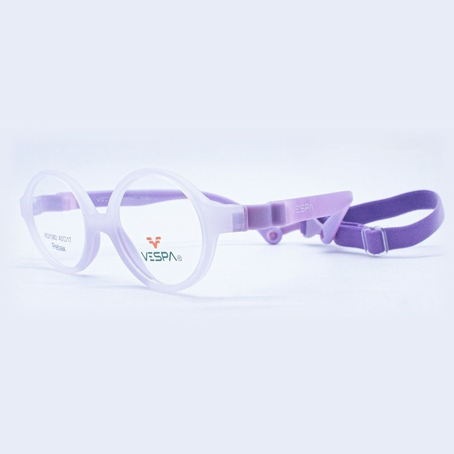 Conoce el armazón Vespa VE-21082, un lente pediátrico hipoalergénico diseñado para niños de 1 a 2 años aproximadamente. Fabricado en Pebax®, material termoplástico ligero, flexible y seguro para pieles sensibles, con banda elástica ajustable para un ajuste perfecto.