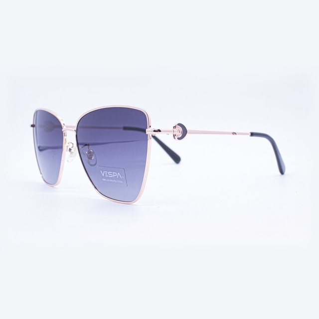 Los Vespa DYVE-033 son la expresión máxima del estilo cat-eye moderno y femenino. Con armazón metálico ultraligero de alta calidad y un delicado detalle circular en las varillas, combinan elegancia retro con un toque contemporáneo. Sus lentes polarizadas TAC de gran cobertura eliminan reflejos molestos, ofrecen protección total UV400 y garantizan una visión nítida incluso en condiciones de máxima luminosidad.