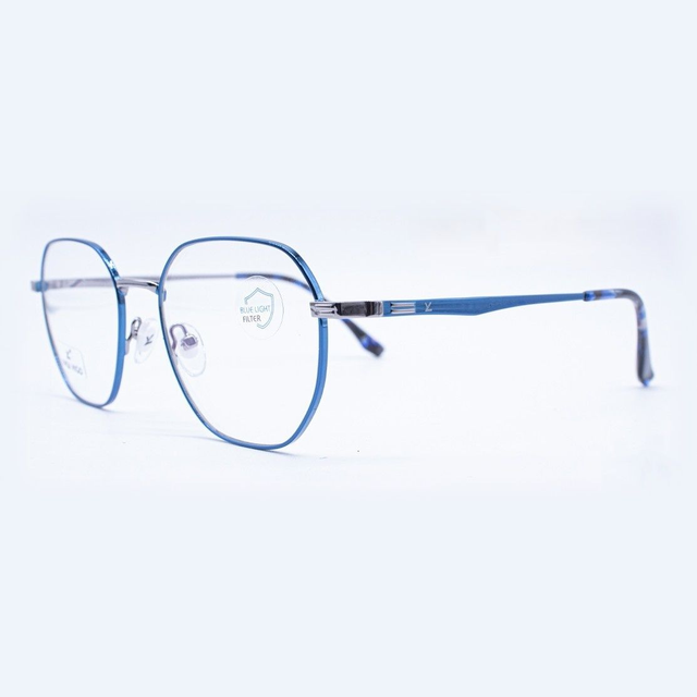 Armazones Linea Vigo metálicos de forma hexagonal color azul. De material resistente, perfectos para toda ocasión.