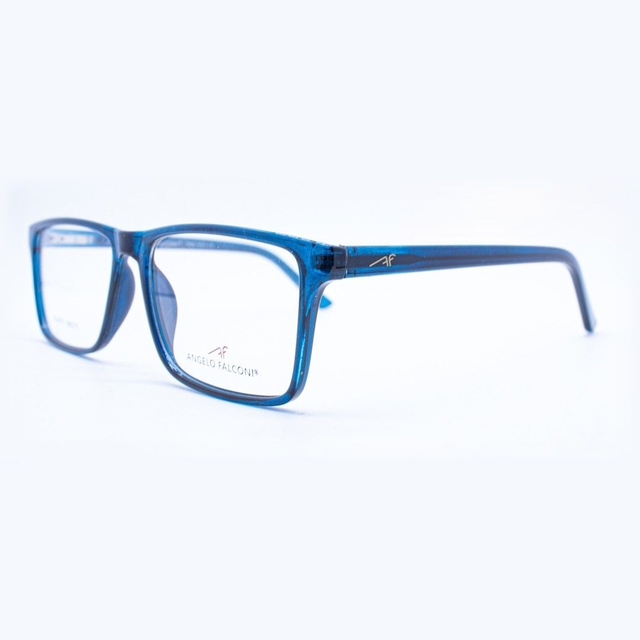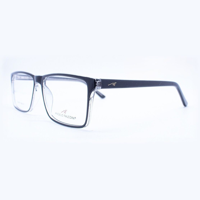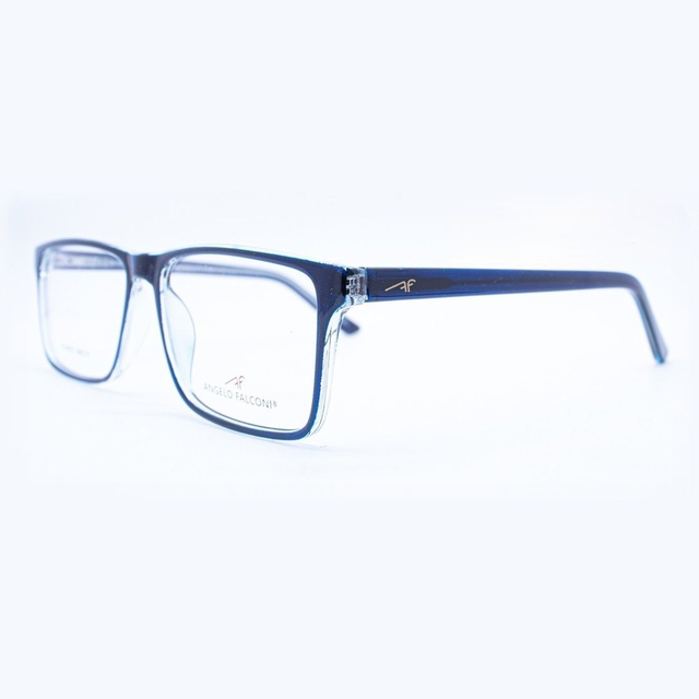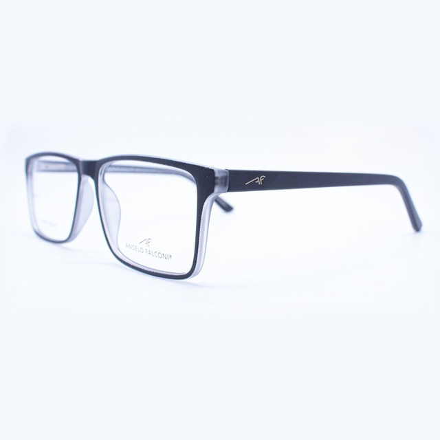 Descubre la montura óptica Angelo Falconi DLAF-01 en material TR-90 ultraligero y flexible. Disponible en colores modernos como negro, azul translúcido y cristal. Tamaño grande: 56-17-145. Perfecta para un ajuste cómodo y resistente. En www.lentesbiobio.cl ofrecemos envío rápido desde Santiago, Temuco y Concepción a todo Chile.